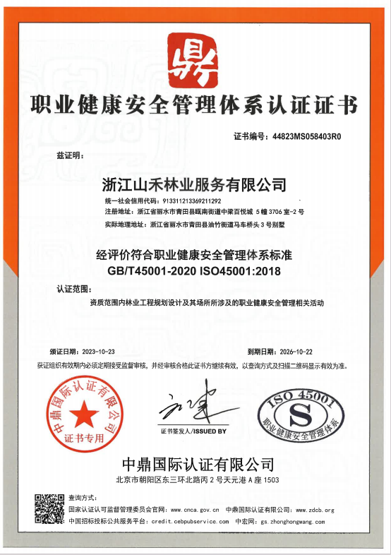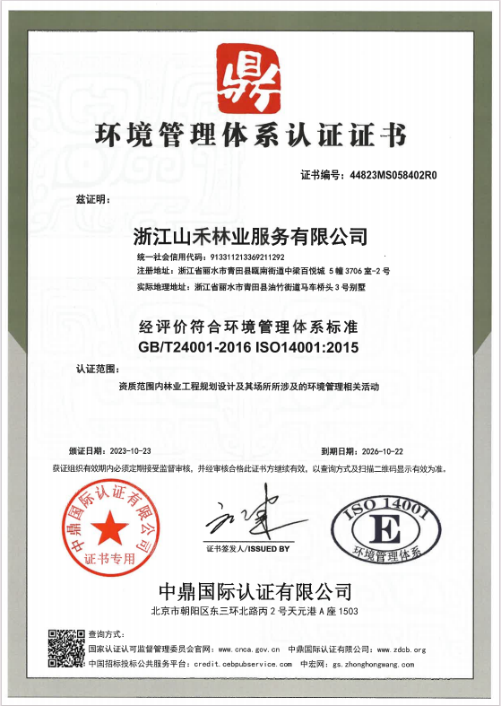 浙江山禾林业服务有限公司成立于2015年4月,是全县唯一一家具有乙级资质的专业林业调查规划设计、绿化造林设计、监理资质的本地企业。
